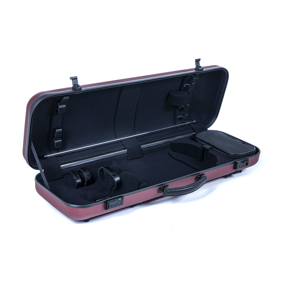 The combination of look and function is complemented by excellent fittings with high-quality features. These include the floating suspension system and the swivel-type bow holder, all developed and patented by GEWA. The interior is finished with a high quality velour which adds a premium feel. There are also plenty of carrying options with a comfortable carry handle, as well as removable padded neoprene backpack straps. Combination locks allow for safe storage.